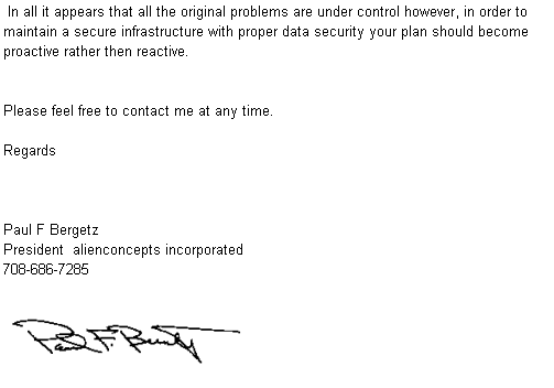 The tests were performed at Domain01 Chicago IL from Nov 25 through Dec 11 2003. Follow-up